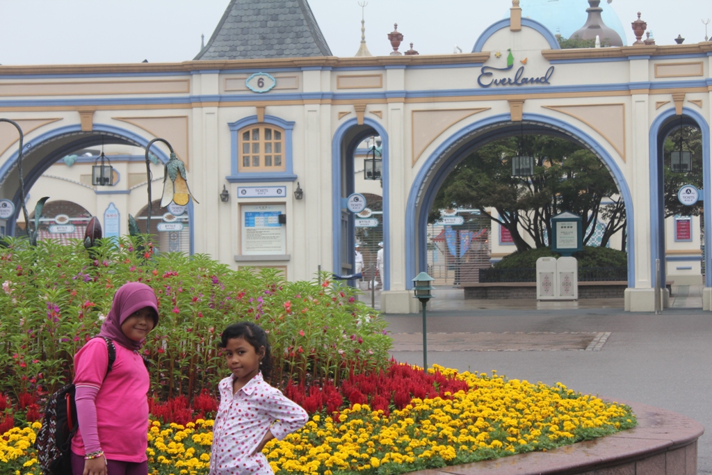 Dua-duanya taman bermain di Korea. Sebelum berangkat ke Korea, saya sempat mencari tau mana yang harus diprioritaskan untuk dikunjungi, secara saya bawa anak-anak dan secara ini beranggaran hemat. Jadi minimal ada salah satunya yang dikunjungi. Tapi akhirnya malah dua-duanya di kunjungi. Sayang anak…sayang anak…..