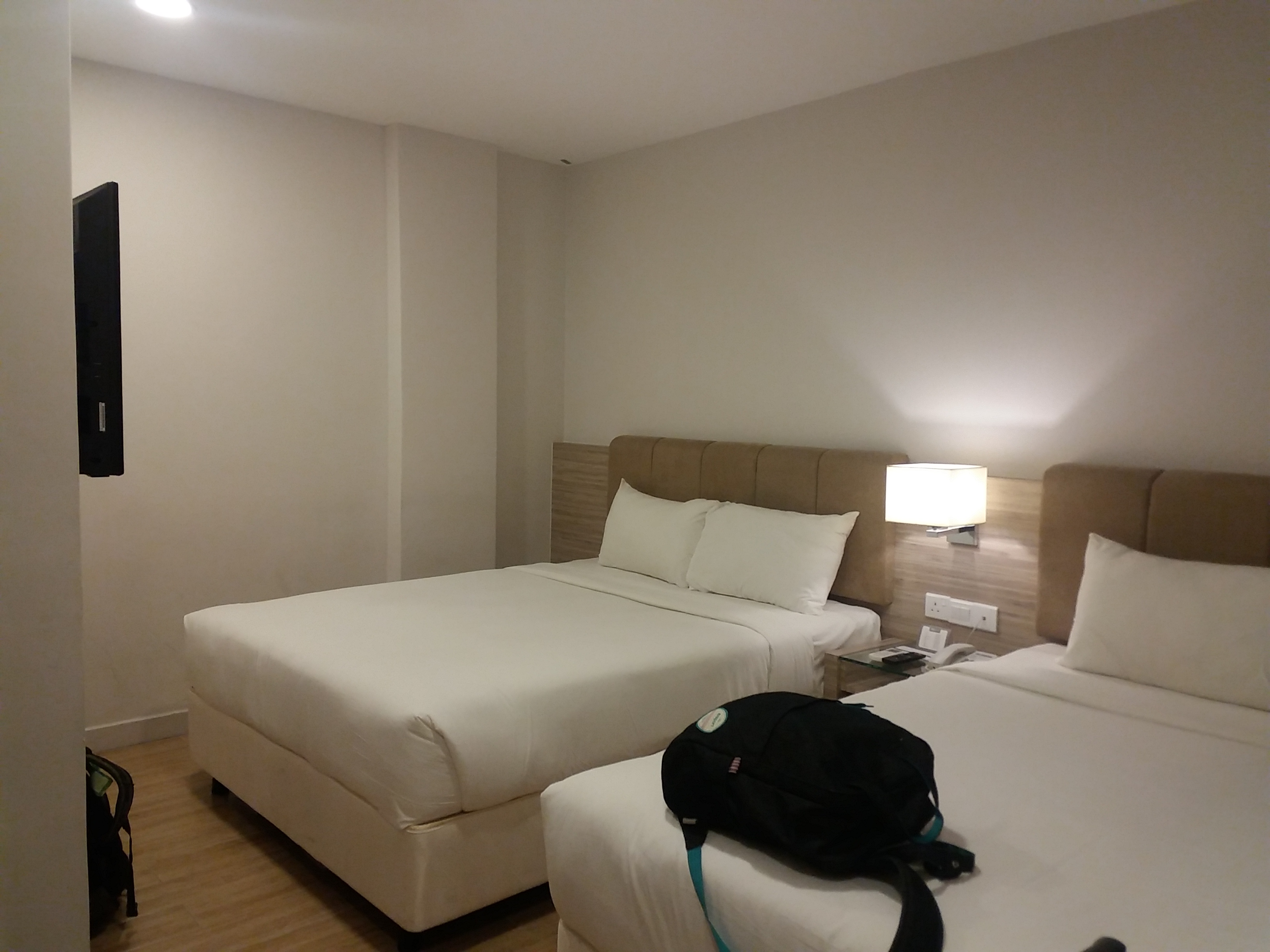 - Banyak pilihan jenis kamar, berdua, bertiga dan berempat. Kamarnya memang gak terlalu luas tapi sepanjang gak bawa koper besar, saya rasa ini cukup banget. Tempat tidurnya nyaman. Kita dapat kamar yang jendelanya menghadap ke koridor hotel, tapi ini bukan masalah buat saya toh cuma semalam ini.