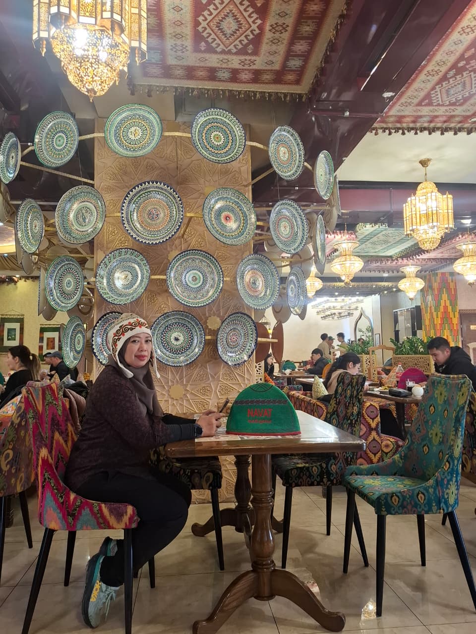 Dari sana, kami melanjutkan perjalanan menuju kawasan Green Bazaar. Di dekat sana, kami mampir ke Rakhat Chocolate Store, toko cokelat legendaris asal Kazakhstan. Kami mampir sebentar membeli beberapa cokelat lokal untuk dijadikan oleh-oleh. Setelah itu, kami masuk ke Green Bazaar, pasar tradisional terbesar di Almaty. Di dalamnya ramai dan penuh warna, dari buah-buahan kering, rempah-rempah, dan lain-lain. Kami berjalan menyusuri lorong-lorong pasar, melihat-lihat dan sesekali menawar souvenir kecil seperti pashmina, topi khas kazakhstan dan lain sebagainya. Lanjut ke masjid Agung Almaty.