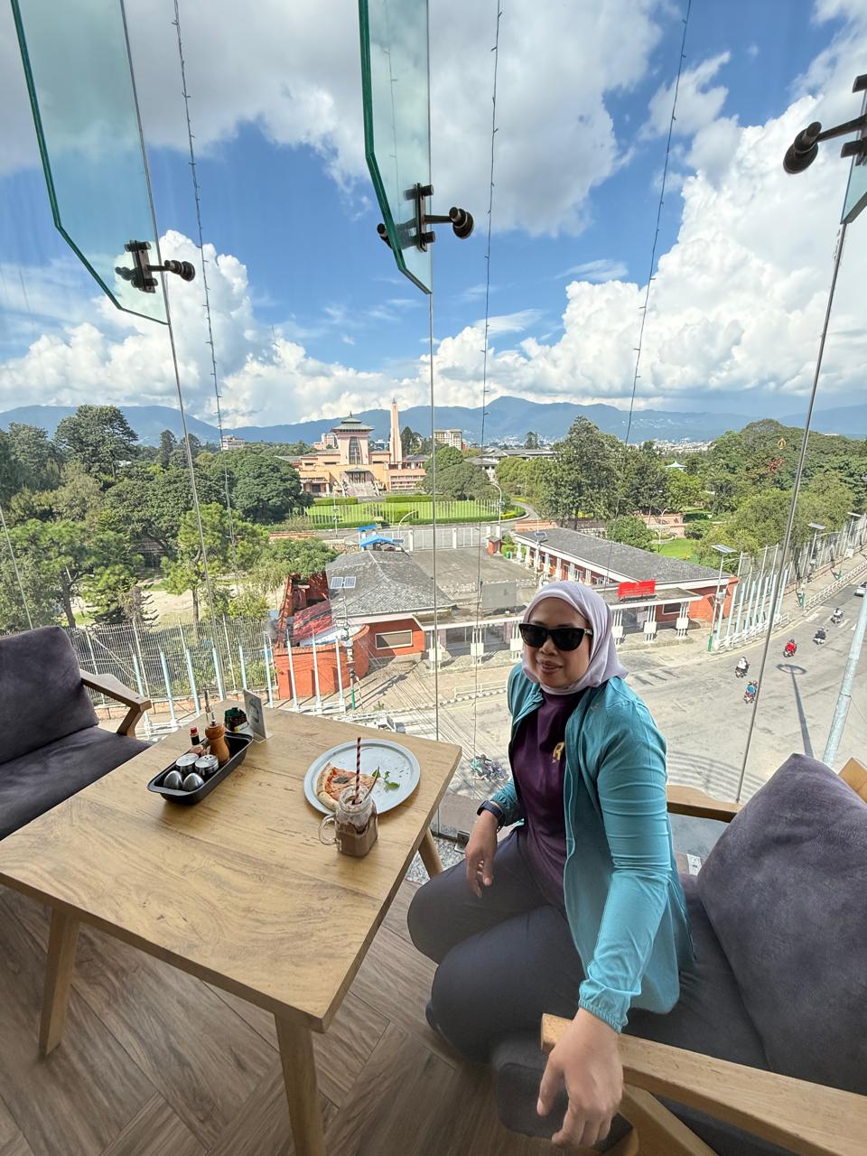 Sore hari, kami mampir ke Hard Rock Café untuk membeli kaos suvenir, lalu menikmati kopi di Himalayan Java Coffee, kafe lokal yang populer di Kathmandu. Mungkin itu local proud pengganti Starbucks. Dari balkon kafe, kami bisa melihat Narayanhiti Palace Museum, istana raja yang kini berubah menjadi museum sejak Nepal beralih dari monarki ke sistem parlementer.