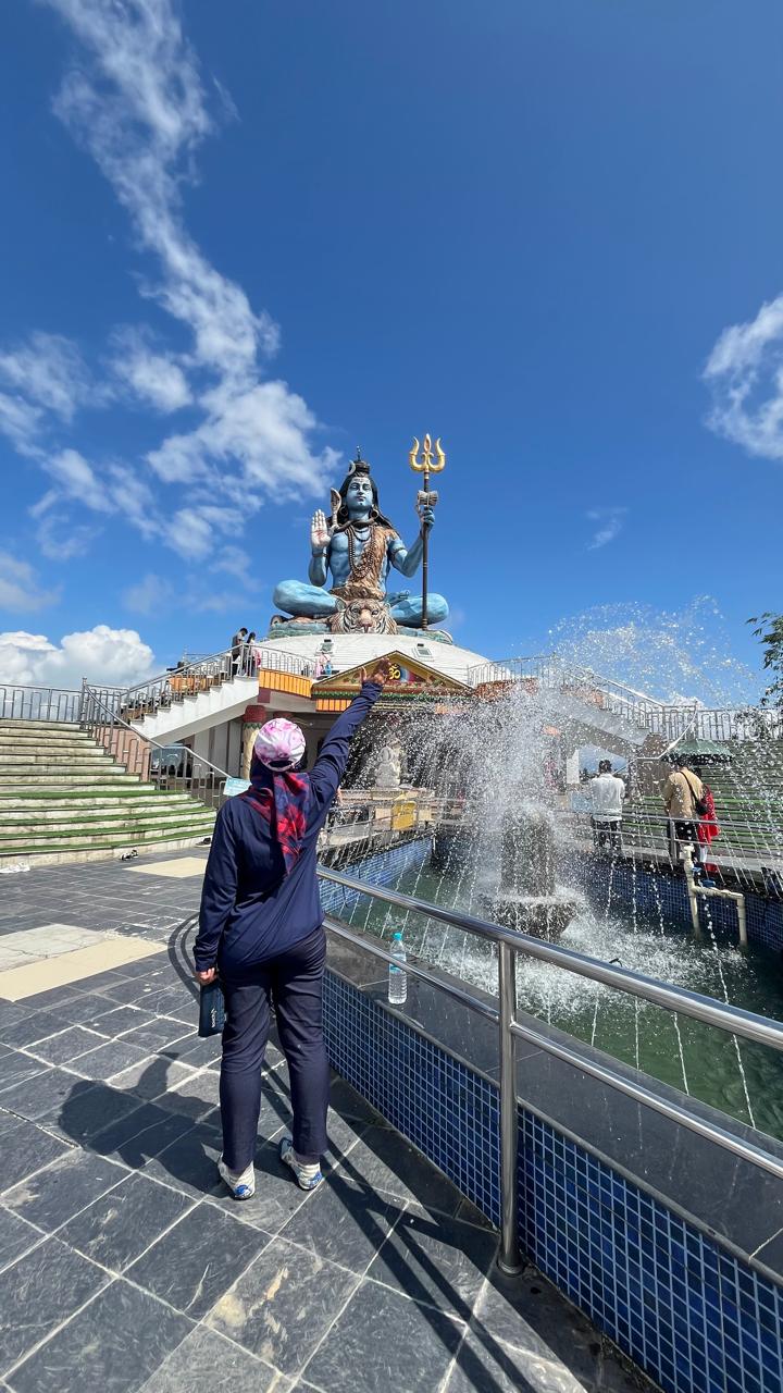 Tujuan pertama kami adalah Pumdikot Statue View Point, tempat berdirinya patung raksasa Dewa Shiva setinggi 51 kaki di atas stupa putih. Dari pelataran di sekitarnya, kami bisa melihat seluruh lanskap Pokhara: danau yang berkilau di bawah dan di kejauhan barisan megah pegunungan Annapurna.