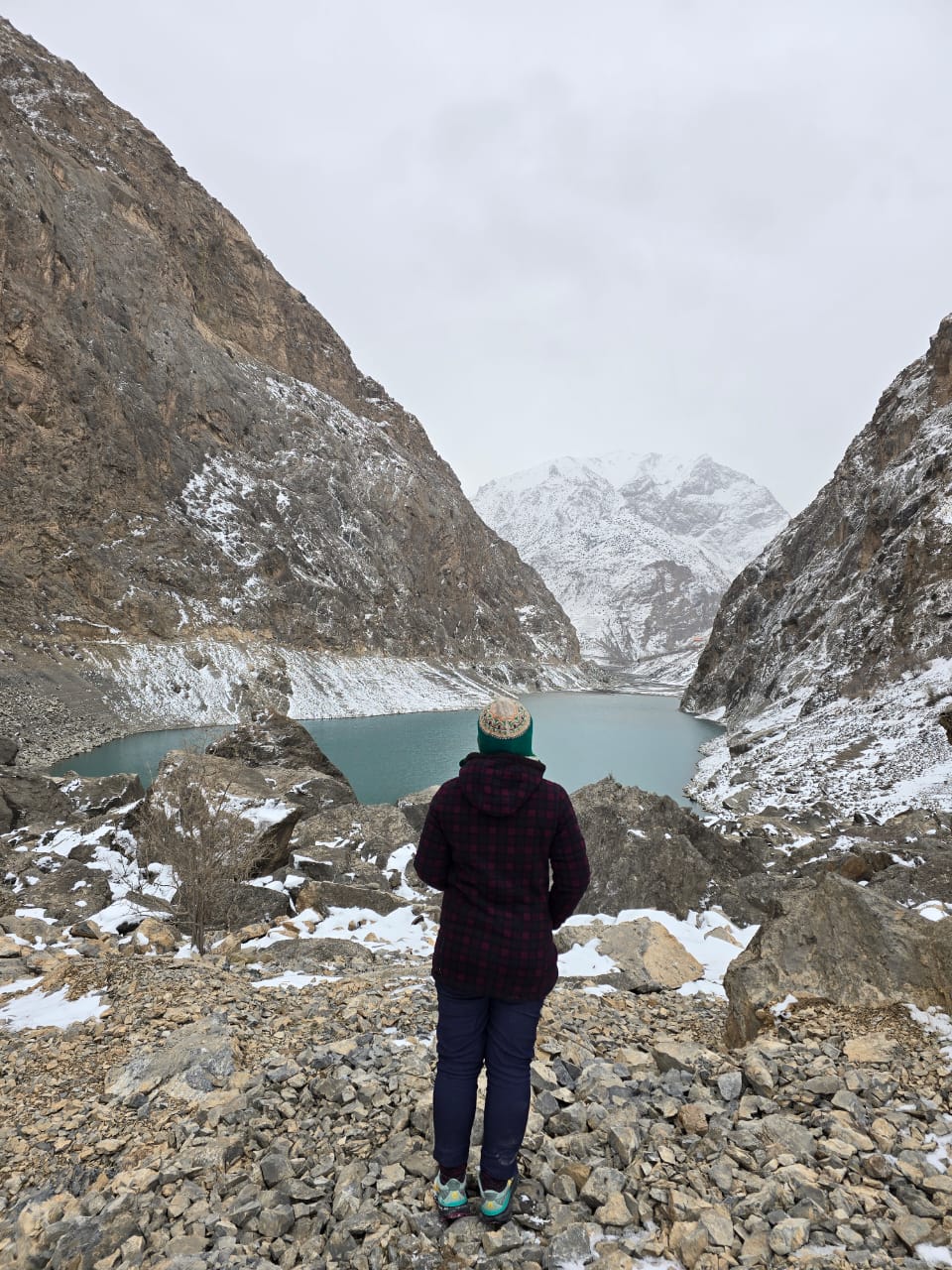 Menuju danau keenam, mobil sudah tidak kuat menanjak karena jalan licin. Sopir menyarankan kami berjalan sekitar 100 meter. Namun, kami tidak sanggup menghadapi dingin dan angin yang cukup kencang. Di danau 1–5 saja kami hanya turun 5–15 menit karena cuaca. Akhirnya, kami memutuskan untuk putar balik. Proses putar balik cukup menegangkan karena kondisi jalan menurun dan berkelok, tapi alhamdulillah semuanya aman. Sekitar pukul 14.00 kami sudah kembali ke Panjakent.